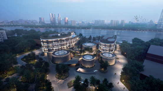 项目设计有机融合了地块历史建筑,包含1906年建成的芳村大冲口油罐群及亚细亚花地仓等市级文物保护建筑,为项目赋予了独特的无形资产。